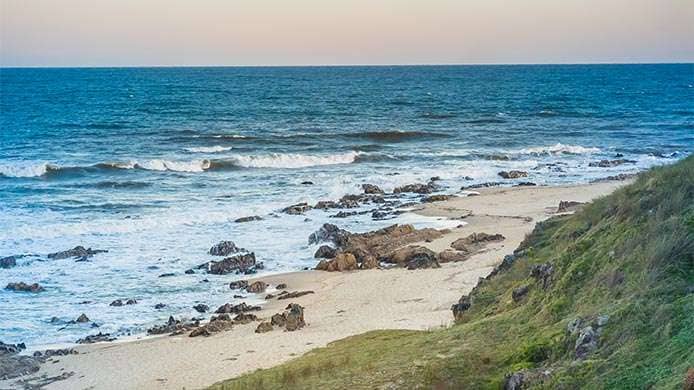 Playa Chihuahua es la primera nudista de Uruguay y se extiende sobre la bahía de Portezuelo.